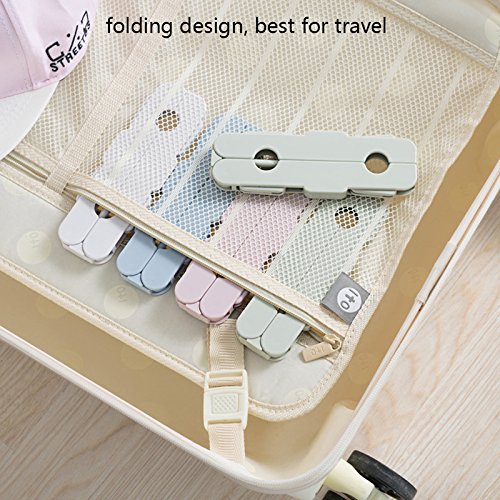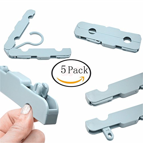 Mulun Folding Travel Hangers with Stocking Clips, 5 Pack Foldable Plastic Clothes Hangers, Best for Travelling Trip Hotel Drying Laundry Pants Coats, Non Slip Travel Hangers Foldable for Suitcase