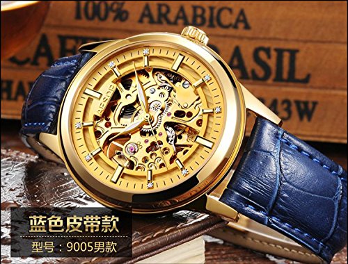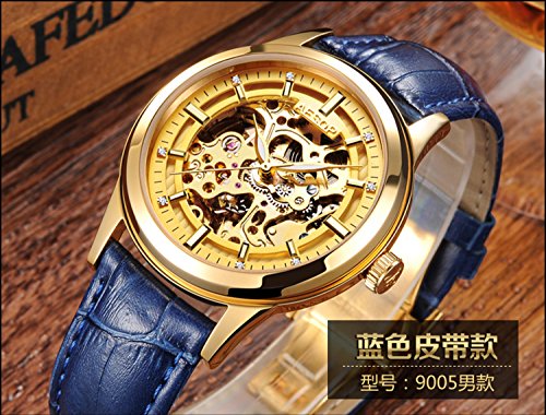 원본상품명: Fanmisスケルトン自動機械合成サファイアブル?レザ?防水光メンズ腕時計ゴ?ルド