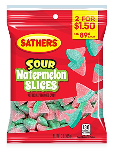 -. Title : Sathers Sour Slices, Watermelon, 3 Ounce Bag, Pack of 12