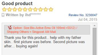 Last year Oct 2013 my brother-in-law introduced pure emu oil to me and I thought I’d give it a try, after a couple of nights it help to reduce the itch and getting better after I continued applying the oil. One month later with confidence on emu product I ordered emu oil capsules, the result was amazing. Now I’m taking the capsules 2 in the morning and 2 after dinner. It has been three months now I can sleep well at night and the skin has stopped itching and become soft and comfortable. Last Sunday I can wear my jogging shoe for a slow jog in the neighborhood.
