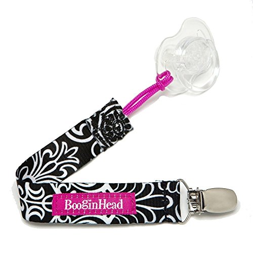Booginhead PaciGrip Pacifier Holder, Black Flourish