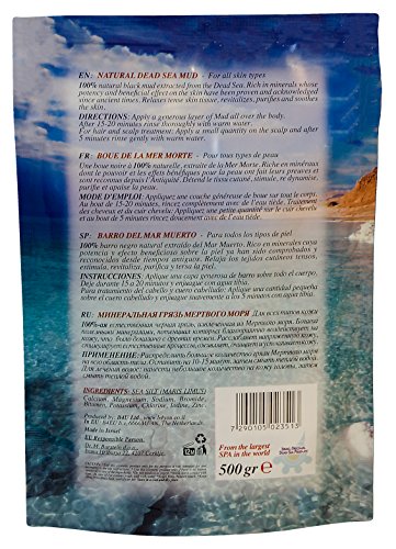 Natural Dead Sea Mud for all skin types 100% natural black mud extracted from the dead sea. Rich in minerals whose potency and beneficial effect on the skin have been proven and acknowledged since ancient times. Relaxes tense skin tissue, revitalizes, purifies and soothes the skin.