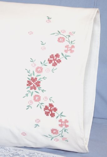 Fairway Needlecraft 83216 Cross Stitch Perle Edge Pillowcases, Small Floral Design, Standard, White
