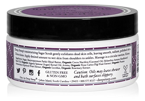 Deep Steep's PREMIUM QUALITY SUGAR SCRUBS indulge your skin with a fast absorbing, non-greasy, ultra-hydrating treatment. These nourishing body SCRUBS are enriched with USDA Organic Argan Oil, Coconut Oil, Essential Oils and Plant extracts. African Shea Butter softens and hydrates dull, cracked skin. Massage on elbows, knees and heals or anywhere deep moisturizing is needed. These beautifully fragranced BODY SCRUBS will enliven your senses while treating the skin. Formulated for the health-conscious shopper, Deep Steep BODY SCRUBS can be enjoyed by all ages and skin-types. Featuring premium-quality bath & body care essentials with an aromatherapy twist, Deep Steep is the choice brand for the health-conscious home-spa enthusiast. All Deep Steep's products are formulated, produced, and packaged from their state-of-the-art, FDA-registered and USDA Organic-certified manufacturing facility on Johns Island, South Carolina. Deep Steep is owned by Paul and Peggy Lieber, a husband and wife duo best known for their work as contract manufacturers and pioneers in the natural skin care industry. For over 30 years, the Liebers have been perfecting formulas that feature botanicals and natural ingredients. With a lifetime of expertise, there is no other company whose attention to accuracy, cleanliness and strict quality control in the manufacturing process matches that of the Liebers. "We are a family business, and the products we make for our customers are the products we use in our own families every day. We use them, our kids use them, our grandkids use them." - Paul Lieber Deep Steep is committed to using premium quality ingredients whenever possible, and we unwaveringly adhere to the highest standards. "Having been raised in rural Ecuador, I am aware of the importance of taking care not only of our bodies, but also of our ecosystem and natural resources. Every time I put on my lab coat, I am reminded that I have a responsibility to this end." - Peggy LieberFeature