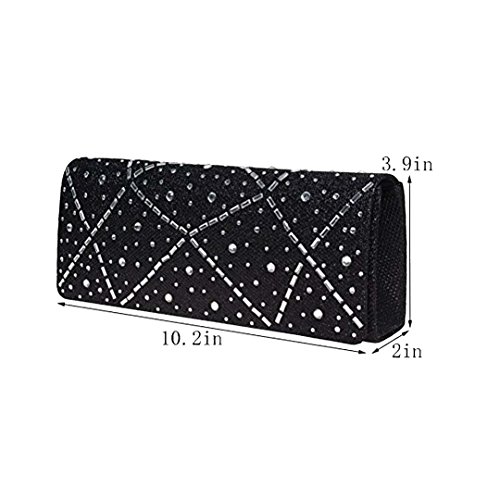 -. Feature : Material:Pu leather / Dimension:10.24inx2inx3.94in(L*W*H)Detachable strap:120cm/47in(A detchable strap silver chain can be use as a shoulder bag or crossbody bag) / Magnet snap closure,interior slip pocket / Eye-catching in wedding,party,prom,ball and evening events and fit for all style of clothes / The evening bag is best gifts for girlfriend,wife,lover and friends
