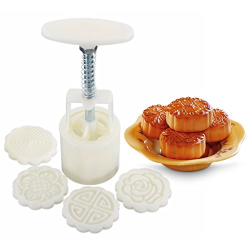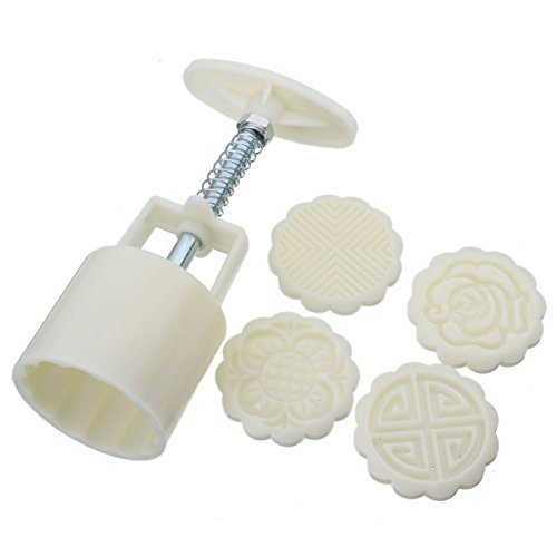 CultinBox Mooncake DIY Moon Round Cake Mold Cookie Cutter 4 Flower Plant Stamps Decoration