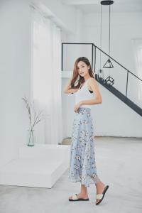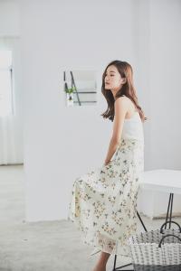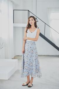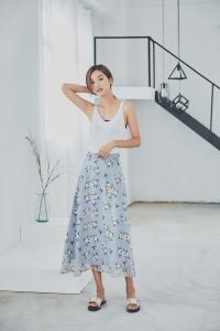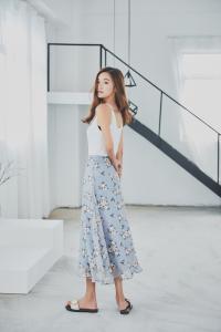 上品なフラワー柄に淡いカラーのスカートが可愛いですね^^
