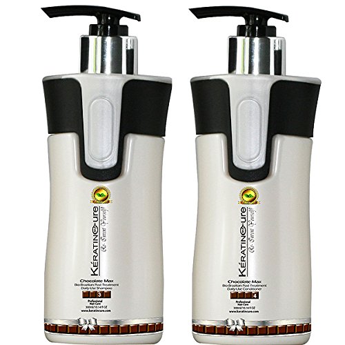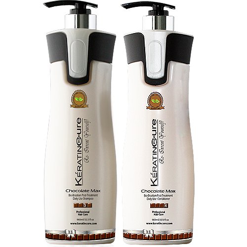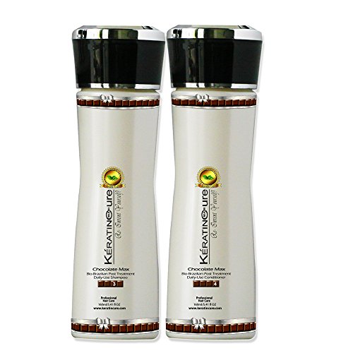 Keratin Cure's Bio-Brazilian Chocolate Max Post Treatment Daily use Shampoo and Conditioner is specially formulated to conserve brightness, strengthen and protect the hair. This product is enriched with moisturizing ingredients such as Aloe and Theobroma Cacao Extracts (chocolate) which ensures the ultimate in maintaining your keratin or color treated hair and safe for daily use. Keratin Cure's Bio-Brazilian Chocolate Max Post Treatment Daily use Shampoo and Conditioner has a balanced pH that is compatible with the natural pH of your hair, rich with components that will treat your hair entirely and is Step 3 in the Keratin Cure Treatment process. Use this product to maintain your treatment or anyone can enjoy this high quality moisturizing and sulfate free daily shampoo and conditioner!Feature
