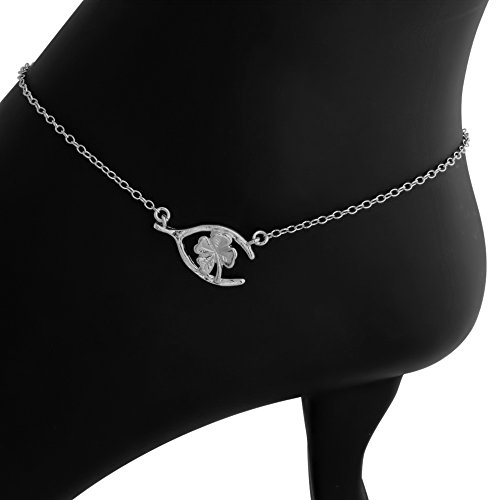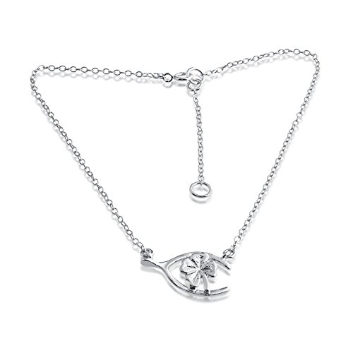 -. Title : Azaggi Sterling Silver Handcrafted Wishbone and Clover Leaf Anklet