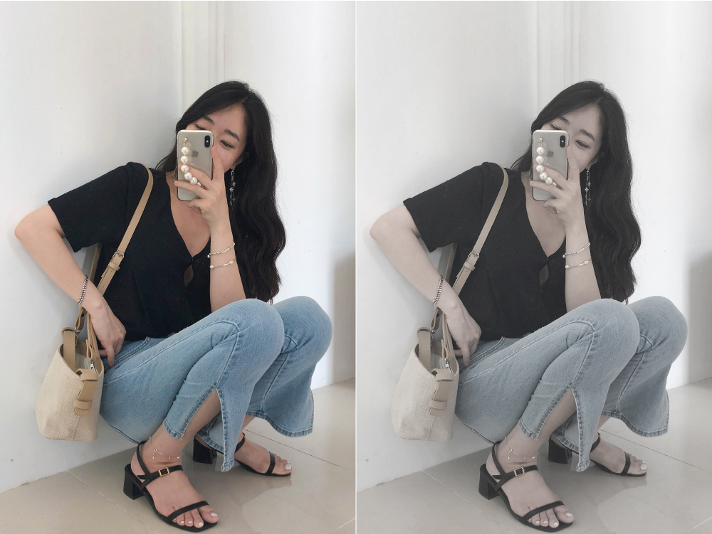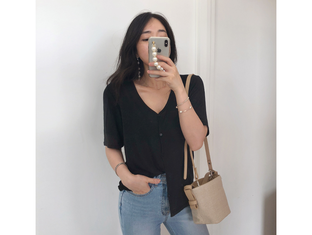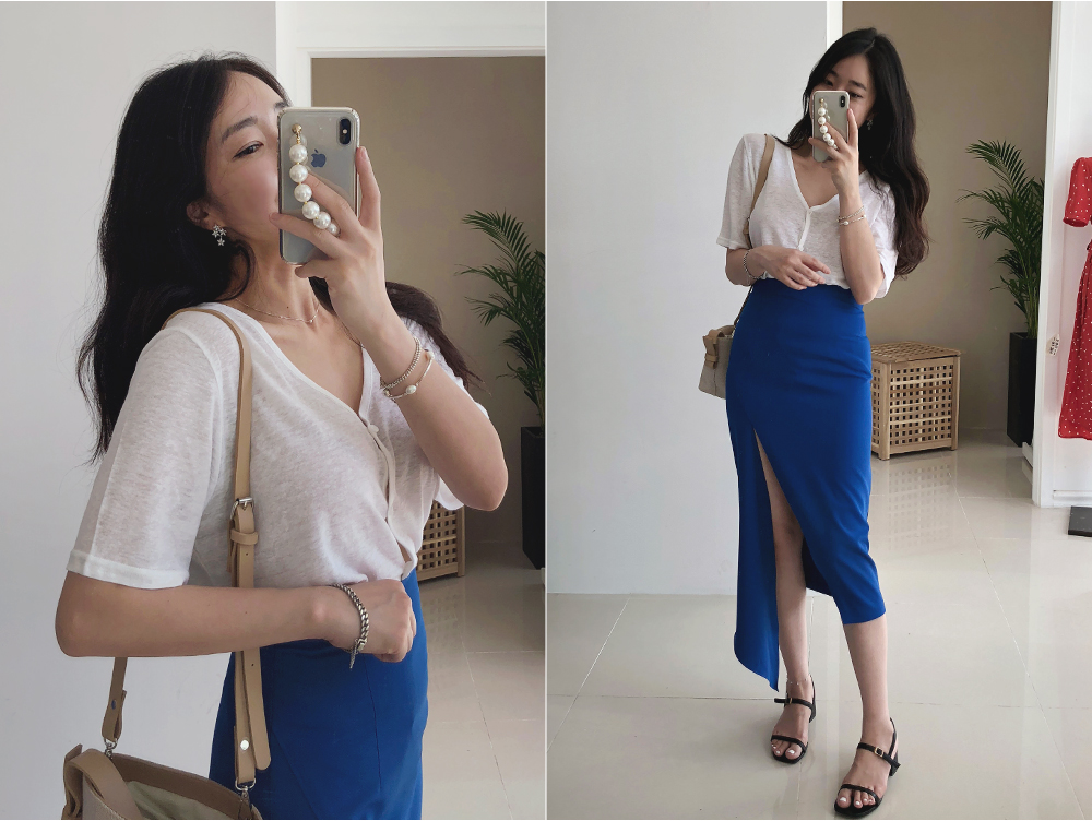 적당히 파인 브이넥으로 답답하지 않고 가볍게