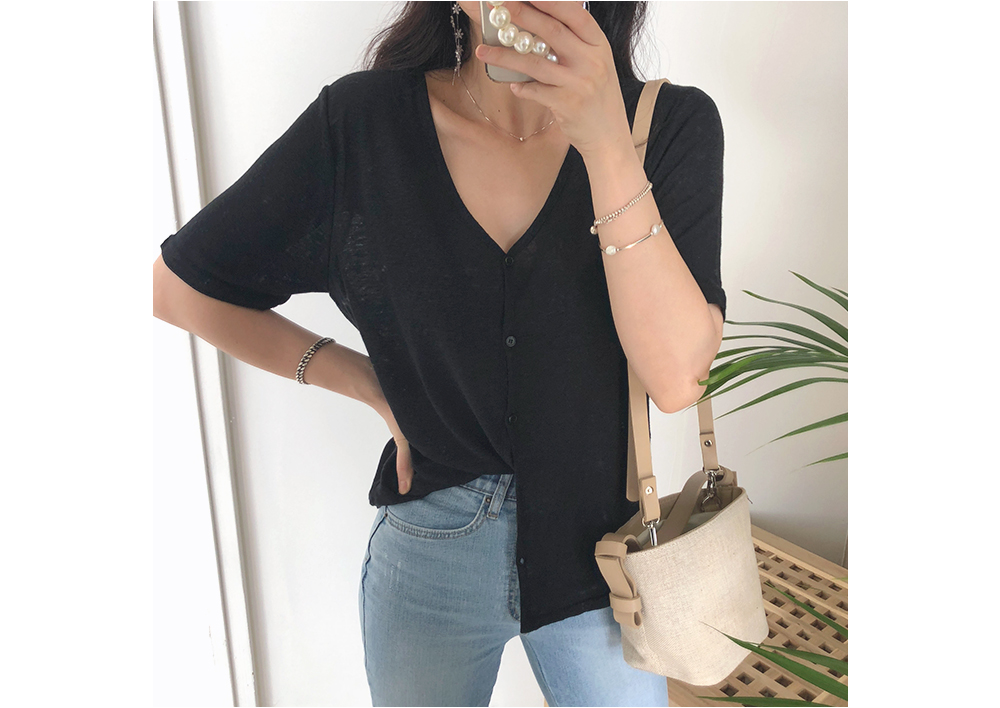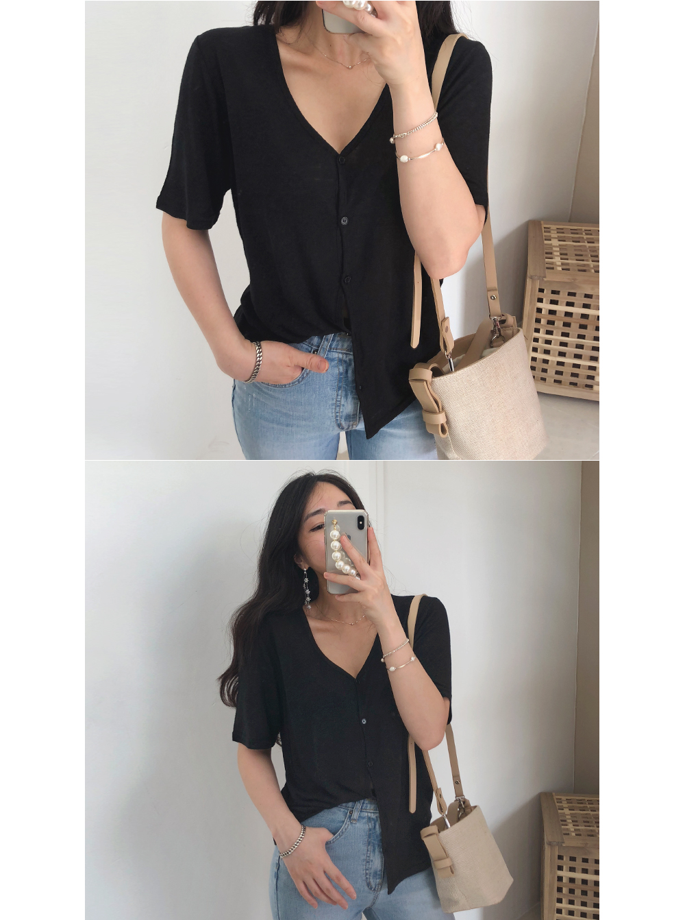 깔끔한 디자인의 반팔가디건을 소개해드려요.