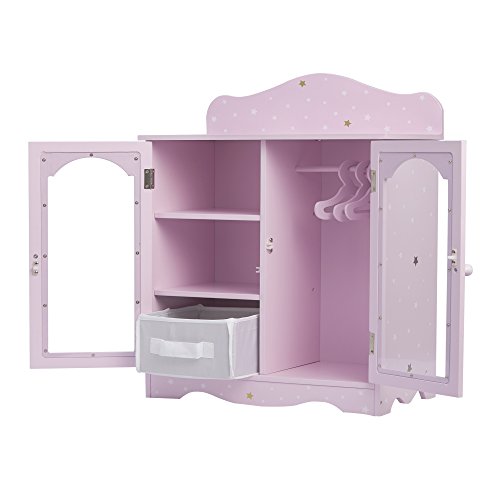 -. Title : Olivia's Little World - Princess 18 inch Doll Furniture | Fancy Wooden Closet with 3 Hangers and 1 Cubby (Grey Polka Dots) | Fits American Girls, Our Generation and More
