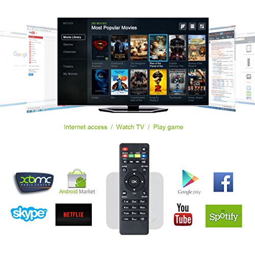 - Feature : Preinstalled Kodi(XBMC). Preconfigured with the latest XBMC/KODI, it allows you to download numerous add-ons, like Youtube, Netflix, Facebook, Twitter, Skype, and you also can play thousands of android games in a large screen smoothly. Install your favorite apps and enjoy advanced technology. Support many kinds of IPTV and OTT TV programmes. / Amlogic S805 Quad Core(1.5GHZ) Android 4.4 Smart TV Box Mini PC WiFi HDMI XBMC. Support three main HD formats: VC-1, H.264, MPEG-2 and many other normal formats such as MPEG-1、MPEG-2、MPEG-4、DIVX、REALMEDIA and so on. / Fully preloaded and configured with the YouTube, Skype, Facebook, Google, Gmail etc apps. You can also sign into your Google play store which allows you to download and install your favorite apps and enjoy advanced technology. Support 4 USB 2.0 host connectors with maximum output current of 1.5A/5V. / It has DDRIII 1GB Ram and 8GB ROM internal storage(support up to 32GB, you can increase the storage size or read files directly from a SD/SDHC/MMC card, which offer you enough space and freedom to install programs on App. / S805 comes with Ethernet, Bluetooth and Wi-Fi connection, you could connect to many of your devices within the same network and share the contents amongst them, such as videos, music and photos. support wifi hotpiont, could be as a wireless router. 30 days money back guarantee and 12 months warranty.