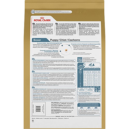 -. Binding : Misc. -. Brand : Royal Canin -. EAN : 0030111520302 -. Feature : Helps support muscle development with 28% protein (minimum) and L-carnitine) / Supports digestive health and maintains a balanced intestinal flora / Contains prebiotics and an exclusive complex of antioxidants (vitamins E and C, lutein and taurine) to help support natural immune defenses -. Label : Animal Supply Company (RC) -. LegalDisclaimer : Must be at least 18 & over to purchase. Items only ships within United States. -. Manufacturer : Animal Supply Company (RC) -. Model : RC520330 -. MPN : ROY-355 -. PackageQuantity : 1 -. PartNumber : ROY-355 -. ProductGroup : Pet Products -. ProductTypeName : PET_SUPPLIES -. Publisher : Animal Supply Company (RC) -. Size : 30 pounds -. Studio : Animal Supply Company (RC) -. Title : ROYAL CANIN BREED HEALTH NUTRITION Boxer Puppy dry dog food, 30-Pound -. UPC : 030111520302