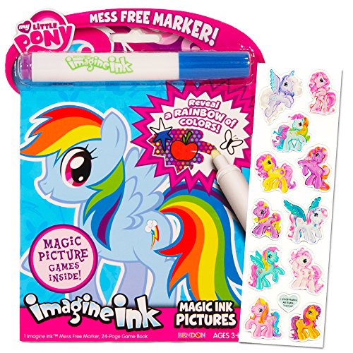 -. Feature : Imagine Ink mess-free picture book set featuring My Little Pony--Rainbow Dash, Fluttershy and more! / The set features My Little Pony in an Imagine Ink picture book, plus 1 mess-free Imagine Ink Marker and 2 sheets fo repositional My Little Pony stickers. / The Imagine Ink picture book uses a mess free marker to reveal a rainbow of colors as you draw on the page. / Designed to be used with the included Magic Ink Marker, a clear marker that will not visibly mark most other items. / Perfect for travel and on-the-go fun. Great fun for any little My Little Pony fan! Great as My Little Pony party supplies and party favors.