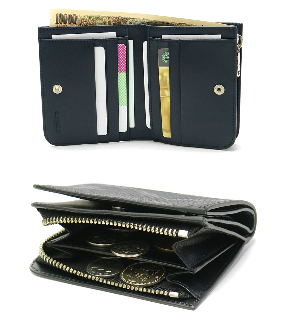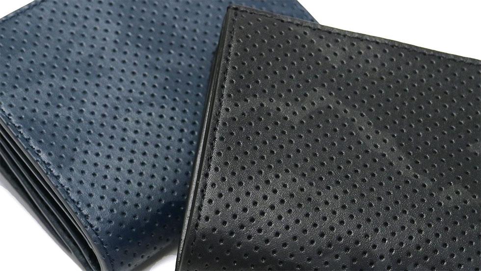 Two-fold wallet of "Dianthus / Diantus" series which expressed camouflage with a stereoscopic technique called embossing. By performing fine punching of eyes, it is designed to combine elegance and hardness.