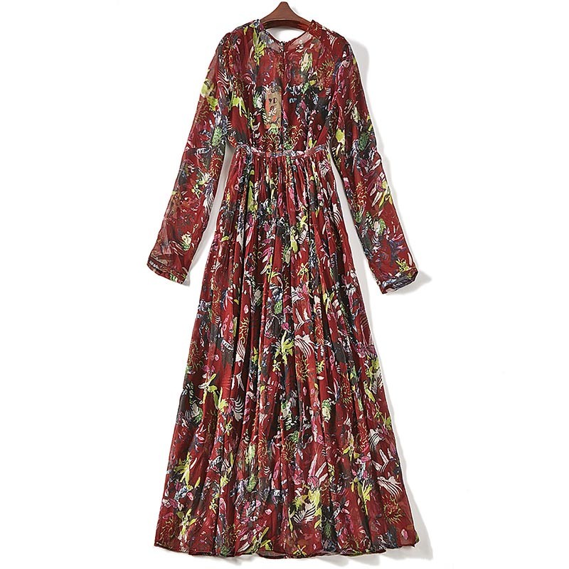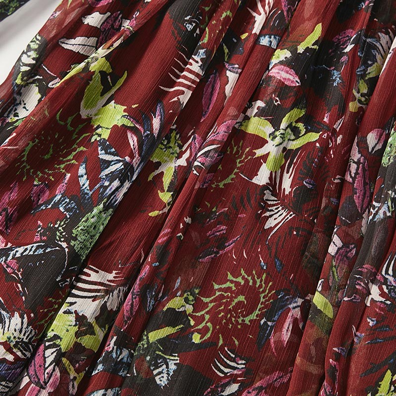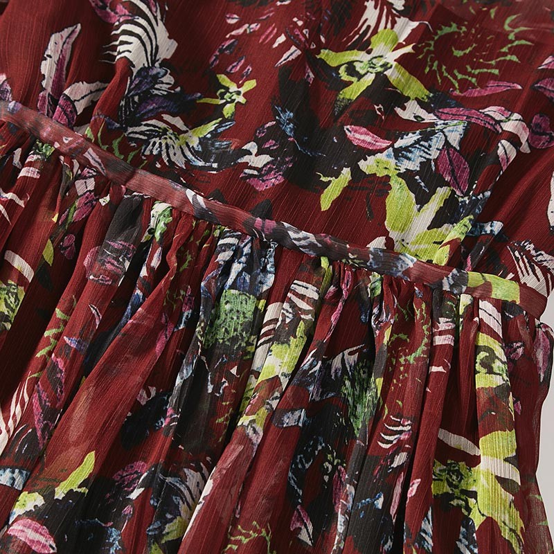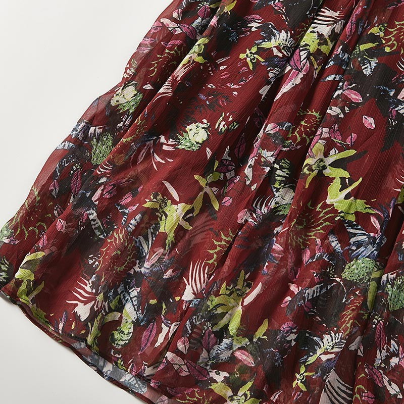 シックなボルドーベースに蘭の花プリントのシックなエレガントワンピース♪