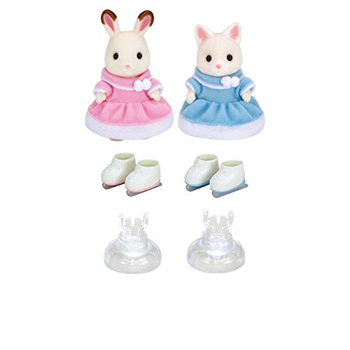 Join Bell Hopscotch Rabbit & Susie Silk Cat as they spend the day ice skating. Place the stands in the Ballet Theater (sold separately), turn the handle, and watch the ice skaters twirl! Critters love skating on the rink! Calico Critters is a unique and adorable range of distinctive animal characters with charming and beautifully detailed homes, furniture and accessories. They live, work and play in an idyllic and wonderful place called Calico Village. These timeless, classic toys promote wholesome family values. These life-like, award-winning miniatures also inspire imagination and creativity. These adorable toys promote healthy cognitive development through pretend play. Acting out storylines will exercise narrative and critical thinking processes, while fine motor skills and dexterity improve as little ones manipulate the fun environments, critters and accessories.Feature