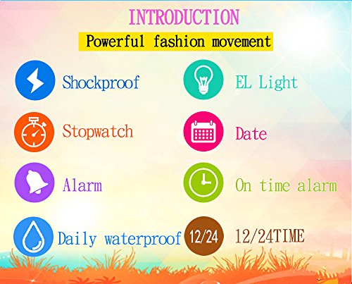 -. Feature : Multi-Functional: 12/24-hour format, dual time display, EL backlight, Calendar(date, week and month), chronograph and more / Comfortable silicone rubber watch band will lead you to the edge of sport fashion. Perfect for both indoor and outdoor activities / Water resistant to 30m (98ft):withstands rain and splashes of water, but no showering / Package including: 1*watch, 1*user manual, 1*gift