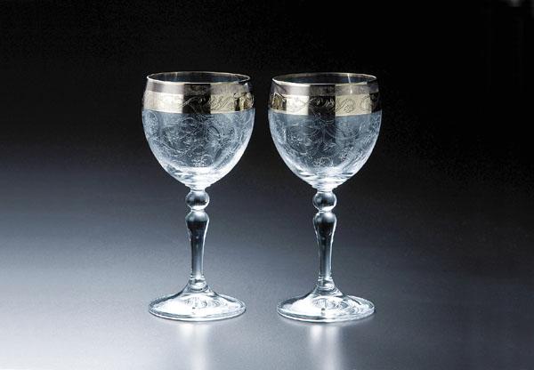 唐草模様のエッチングにプラチナを重ねた上品なシリーズです。 ※サプライヤー直送品 ご注文後2~3営業日後の出荷となります【商品名】PL2-3003 ボヘミア プラチナレースワインペア