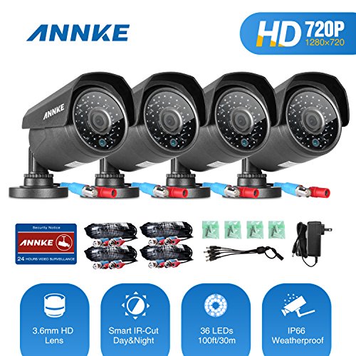 -. Title : ANNKE 4 pack 1/4" Color CMOS 720P Security Indoor/Outdoor Bullet Camera, 720p HD Bullet Cameras with 66ft Night Vision, IP66 Dust and Waterproof Rating camera