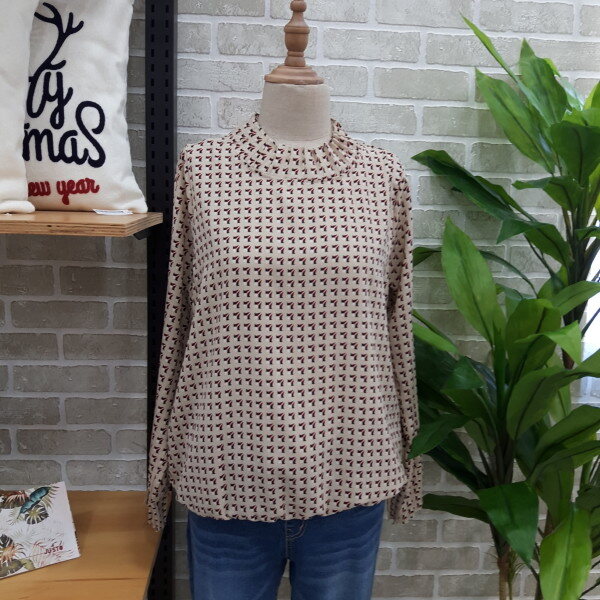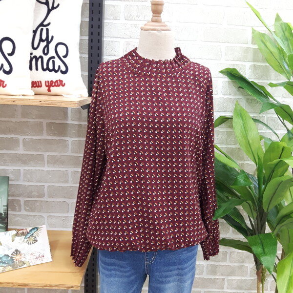 패턴이있는 레이어 블라우스입니다ㅡ넥부분과 소매부분은 기계주름으로 포인트 되어 있으며 밑단은 시보리로 되어있어 바지나 스커트 어느 옷이랑 코디 하셔도 무관한 디자인입니다