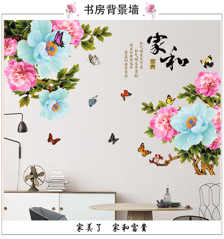 花卉花朵墙贴纸 墙贴卧室温馨书房客厅背景墙装饰贴画 墙纸自粘