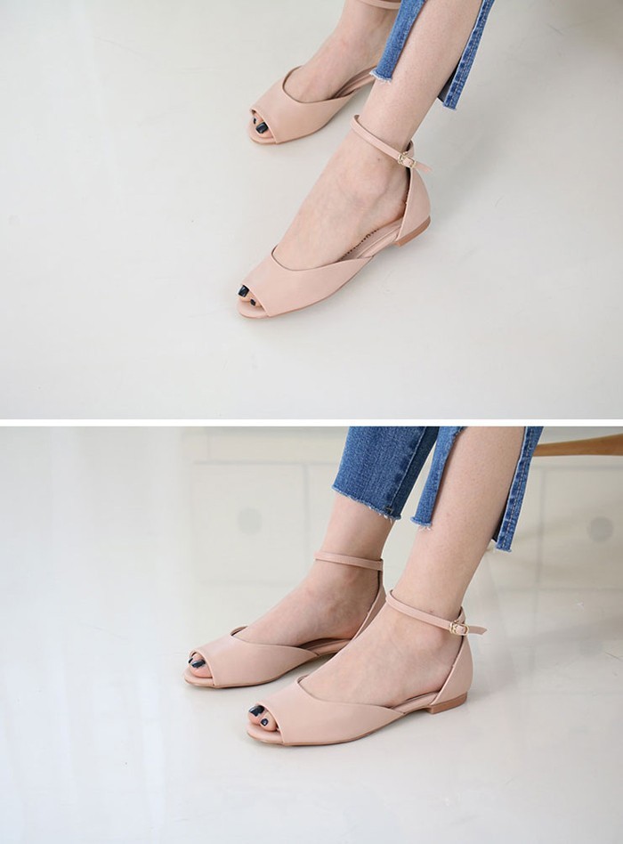 商品名:サンダル レディース ペタンコ サイドオープン アンクルストラップ 2018 春 ファッション 靴 婦人靴