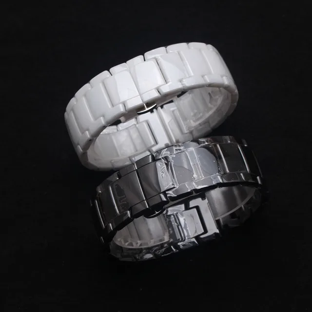 | [해외] 더 손목 시계 밴드 스트랩 폭 22 미리메터 블랙 세라믹 시계 액세서리 다이아몬드 스마트 시계 패션 광택 배 버클 |