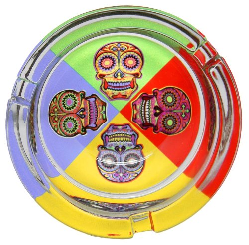 -. Title : Day of the Dead 4 Sugar Skulls with Crosses Glass Ashtray - 3.25"