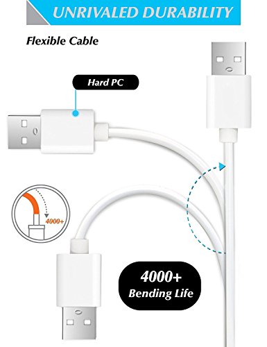 Usb to Micro Usb Cable, 3Pack 6.6FT Long Fast Charge USB 2.0 A Male to Micro B Sync Charger Cord for Android, Samsung, LG, HTC, Motorola, Nokia, MP3, Camera - White