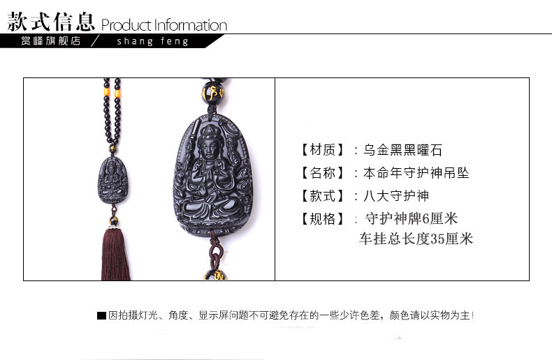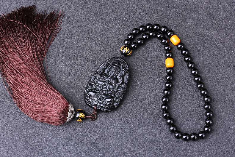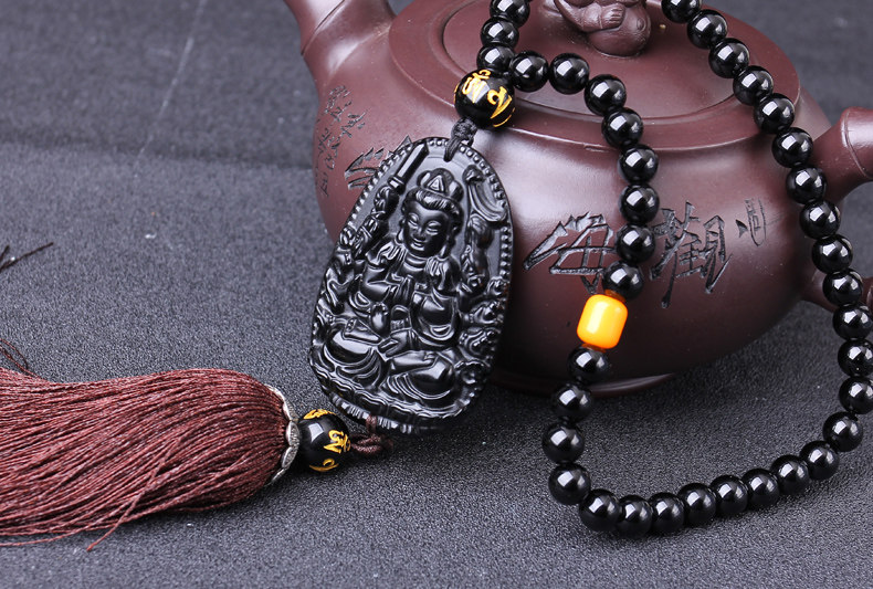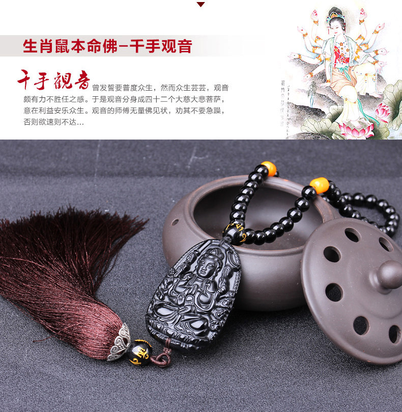 天然冰种黑曜石八大守护神吊坠 千手观音菩萨生肖属鼠本命佛