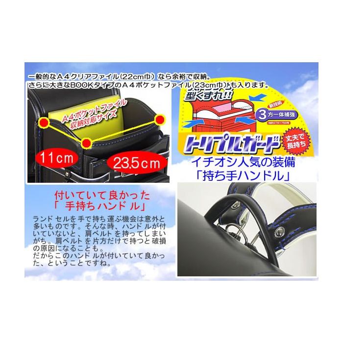 충분히 들어 가는 와이드 포켓과 개폐하기 쉬운 더블 패스너 안주도 장비.★상품 보증★6년간의 메이커 보증이 붙어 있음(초등학교 졸업까지)