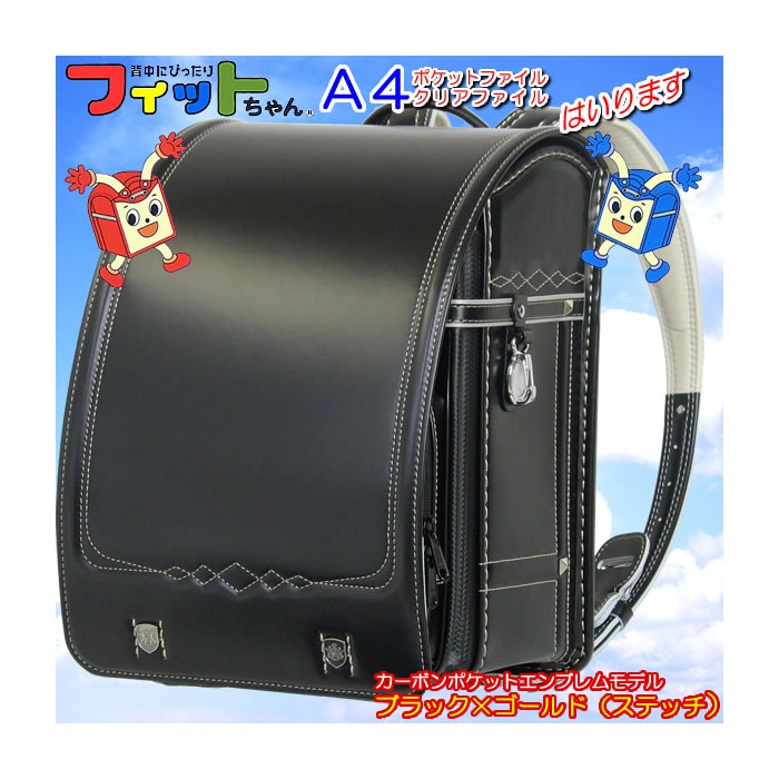 원본상품명: フィットちゃん エンブレム ランドセル カ?ボンスタッズモデル A4フラットファイル ??ワイドサイズ送料無料