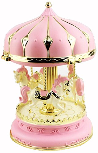 HorBous Classic Clockwork Musical Box Carousel Merry-Go-Round with Color Change LED Light for Kids Children Girls Christmas Birthday Wedding Valentine Gift Home decoration Pink/Gold (Pink)