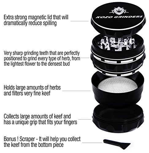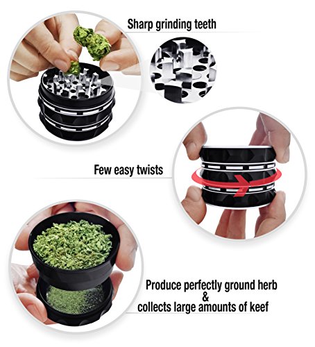 LARGE KIEF CATCHER - Comes with mesh screen which captures and filters very fine kief into a big catcher. This allows you to use the purest part of the herb, the pollen, which contains high amounts of THC.