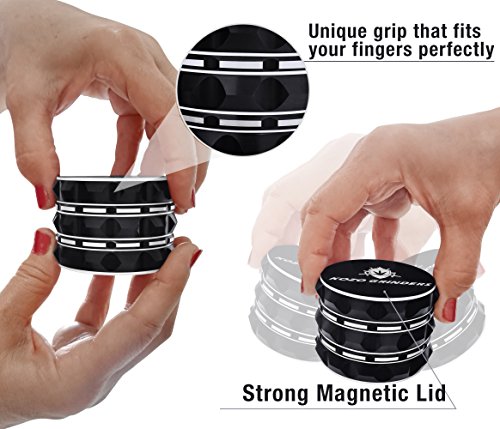 NEW AND IMPROVED DESIGN - We've made few improvements that make our grinder even better than it was before! Our new removable mesh screen is deeper and fits perfectly into the bottom piece. It was specifically designed to hold more ground material and be more stable. This will allow you to grind more herb at once and prevent you from spilling it while opening the top part.