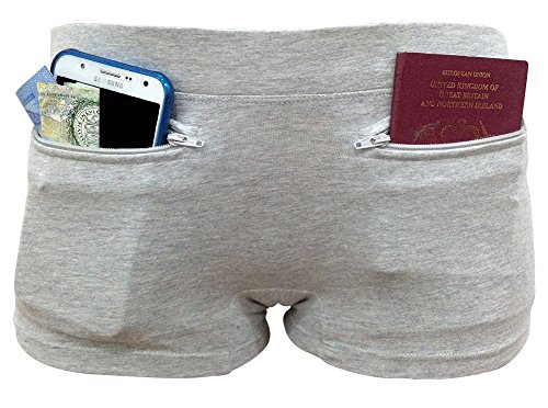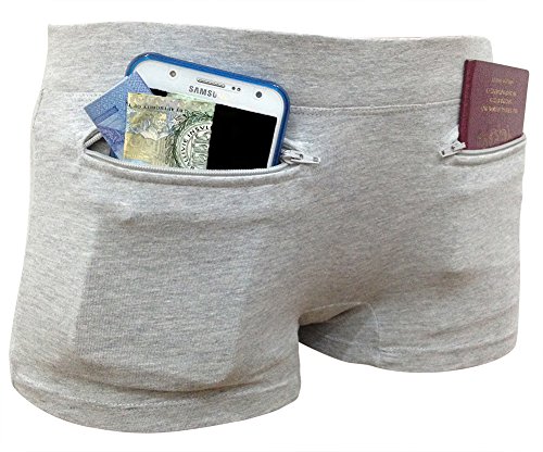 The underwear comes in a cute boy short style, with two pockets with zippers closures. The pockets are just the right size for a passport and can comfortably hold credit cards, id cards, drivers license and cash too. Only you will ever know the pockets are there, making your travels worry free. 95% cotton, 5% spandex. Wash warm with like colors. Preferably hand dry or if needed tumble dry low. We recommend that you always go a size up when deliberating between sizes. The Clever Travel Companions travel safety gear with hidden pockets is developed with safety, style and comfort in mind. More than 400 000 travelers are pick-pocketed each day around the world and even more travelers simply misplace and forget their valuables on the road. With the Clever Travel Companion's safety products you are perfectly pick-pocket proof. The Clever Travel Companion's products have been seen in and favorably reviewed by many major travel media publications.Feature