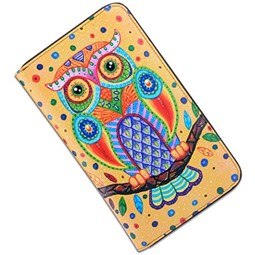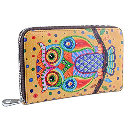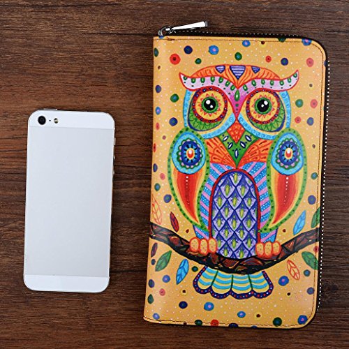 YALUXE Women's Owl Print Real Leather Large Clutch Wallet for Card Phone Passport Checkbook