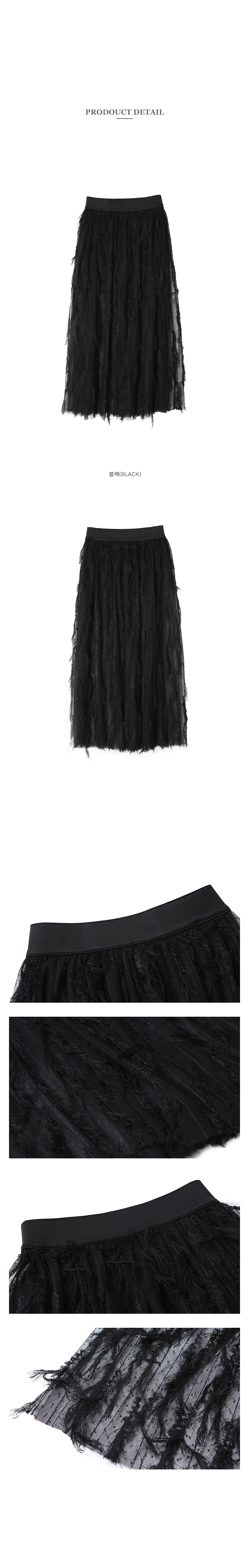 깃털프린지가 달린 메쉬 스커트입니다.