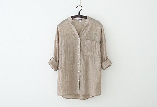 -. Title : Cooldry シャツ 心地よい肌触り きれいめ 七分袖 綿 麻 ブラウス レディース シャツ 白 リネン シャツ 日焼け UV 対策
