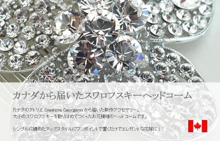 レンタルもいいけれど、購入もおすすめ!きっと思い出の品として残ります。ウエディングにぜひ、カナダのアトリエ Creations Georgianni から届いた、” 新作ヘアコーム付きアクセサリー ”大小のスワロフスキーを密に散りばめられた、エレガントなフラワー・ヘアアクセサリー(ヘッドコーム)です。シンプルにまとめられたアップスタイルのワンポイントとしておすすめです。コームが施されており、装着が簡単です。【検索キーワード】ウェディングドレス/ウエディングドレス/白ドレス/マリッジ/ブライダル/ガーデンウェディング/フォトウエディング/花嫁/新婦/ブライズ/挙式/結婚式/披露宴/パーティ/パーティー/チャペル/教会/人前式/セレモニー/海外/リゾート/ホテル/式場/2次会/1.5次会/前撮り/アクセサリー/ヘアアクセ/ウエディング小物/ウェディング小物/Wedding/Bridal/ギフト/プレゼント/贈り物/花/フラワー