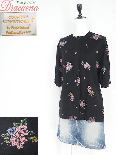 Ladies ブランドPendleton ペンドルトン カラー黒ベース メール便可 コンディション★★★ 素材レーヨン92%・シルク8% 表記サイズ8 実寸サイズ 着丈 64 cm 身幅 46 cm 肩幅 38 cm 袖丈 29 cm ※ウエスト・ヒップ以外は平置き採寸