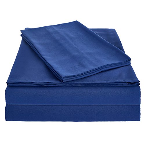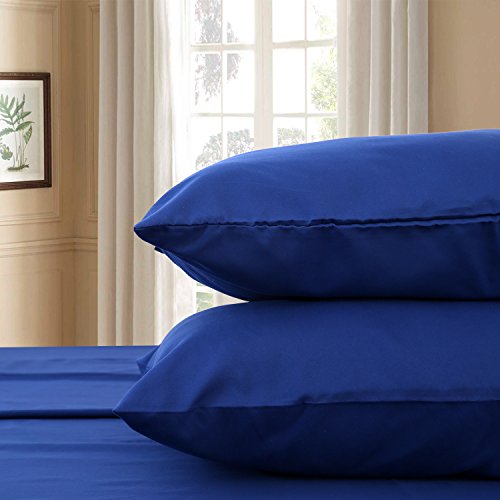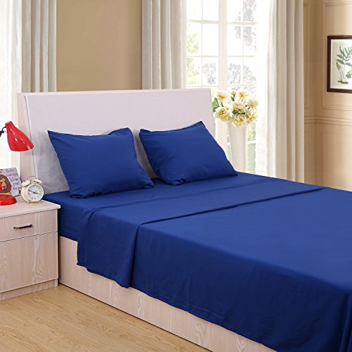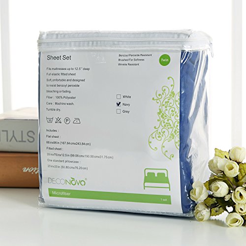 Deconovo 3 Piece Twin Size Bed Sheets Set Brushed Microfiber Soft Breathable Flat Sheet, Deep Pocket Fitted Sheet, 1 Pillow Case Wrinkle Fade and Stain Resistant Bed Sets Blue