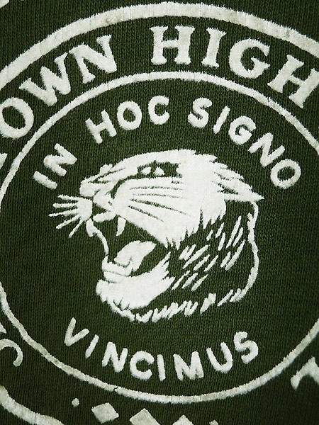 Ladies ブランド- カラーカーキ メール便不可 コンディション★★★★ 素材コットン 表記サイズ- スタッフコメントアメリカ、バージニア州の高校のスウェット。ヴィンテージですが、状態も良く、女性にオススメのサイズ感です。タグなし。フロッキー部分にヨゴレ、スレ感などあり。 実寸サイズ 着丈 59 cm 身幅 48 cm 袖丈 68 cm ※ウエスト・ヒップ以外は平置き採寸