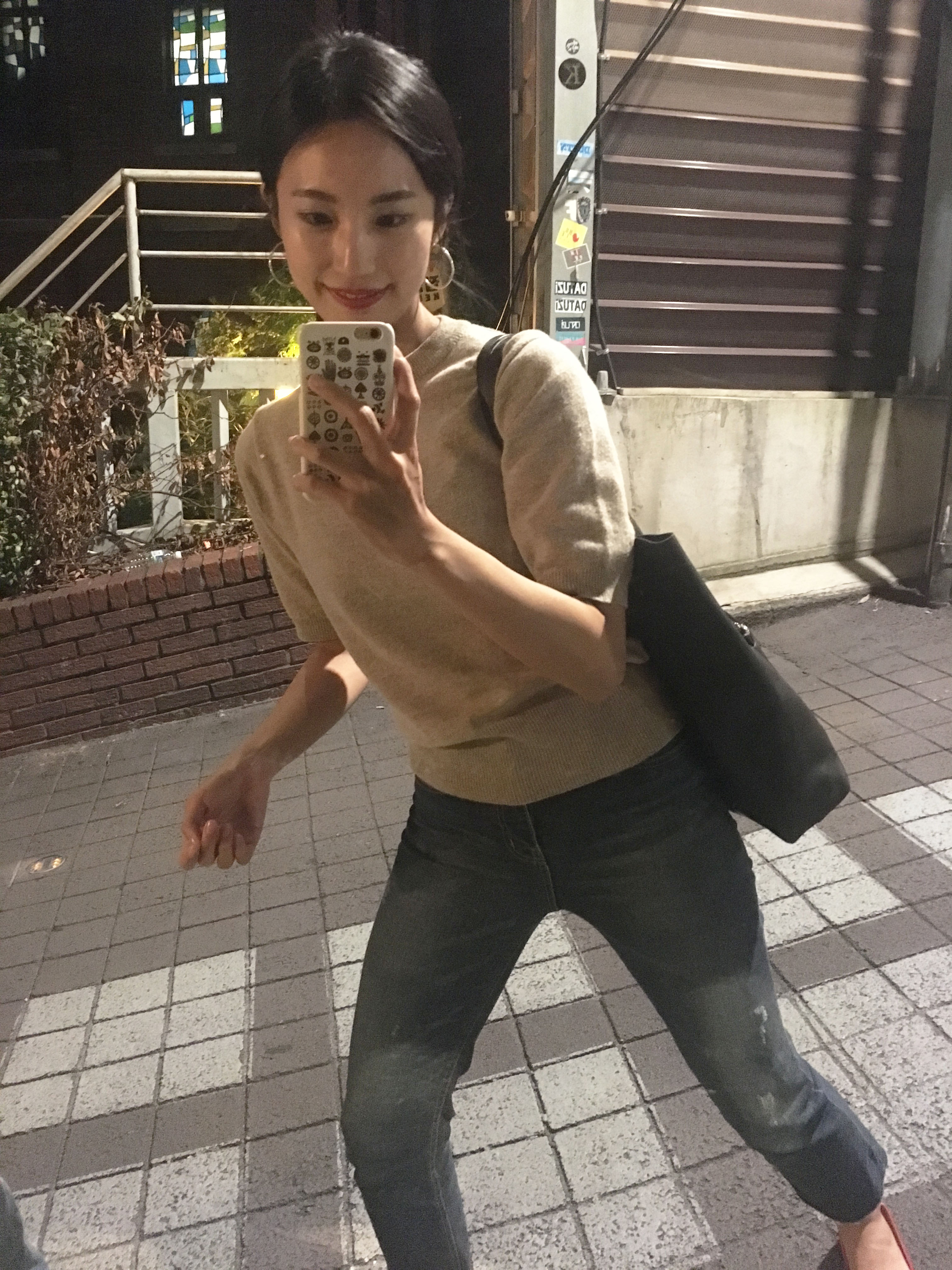 Between the fall autumn 5-part knit Beige and other 5color Banpaola woman pretty short sleeve