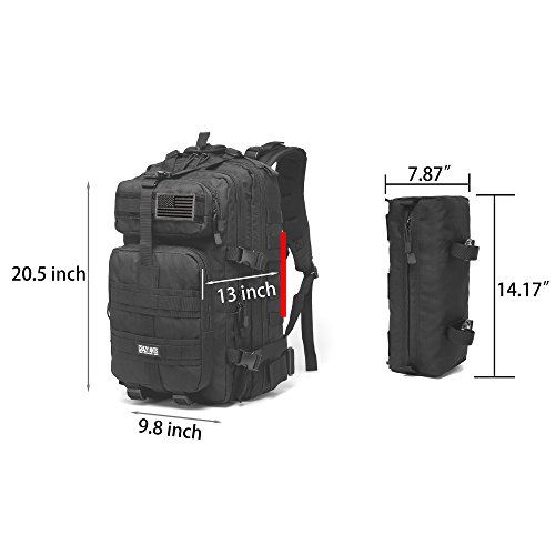 Feature : Size: 20.5 x 13 x 9.8 inch, 37L, Can hold laptop up to 15.6" / Constructed of durable 900 denier polyester, waterproof and more durable than 600D, this tactical pack is for hard use / Padded and adjustable shoulder strap, Mesh padded back panel is hydration compatible.Molle webbing platform on face and sides for customizing with additional gear / Contoured shoulder straps with quick release sternum strap and waist strap, waist strap is removable. Main compartment with zip around closure, interior zip pocket and mesh pocket. / Our tactical assault pack backpack can be used as military backpack, 3 day assault pack, bug out bag backpack, combat backpack, range bag, hunting backpack, survival backpack, rucksack military army backpack or trekking backpack.