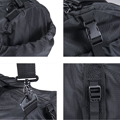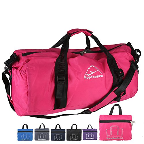 -. Brand : HOPSOOKEN -. Department : mens -. Feature : LARGE SPACE: GYM DUFFEL BAG with 23x12x12 inches is a convenient choice for your everyday activities, overnight, sports, gym, weekend and vacation. / HIGH QUALITY AND DURABLE: Ripstop Technology and Waterproof nylon keeps gear dry. Adjustable & Detachable Padded Shoulder Strap for comfort and Dual Handles for easy carrying. / FOLDABLE AND PORTABLE: Foldable travel duffel sport gym bag save space and avoid the lage surcharge. Fast packed into itself and easy to carry. It is perfect for anyone on the go, don't leave home without it! / GET VALUE STUFF: Finished interior seams for durability. Two spacious exterior zipper pockets for easy access and one mash interior slip pocket for your smaller items. Front zippered organization pocket for storage clothing, shoes, toiletries, readings, iPad / tablet and personal items. Ventilated shoe storage compartment for 2 sets shoes. Interior organization compartment with Big Mesh interior for carry your sports gear. / 100% SATISFACTION GUARANTEED: We stand behind our product. If you are not completely satisfied we will give you a full refund, zero questions asked! -. ProductGroup : Apparel -. ProductTypeName : LAGE -. Title : Large Travel Duffel Gym Bag Sport Women Men Foldable Duffle Shoulder Bag Lage