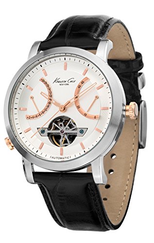 -. Binding : Watch -. Brand : Kenneth Cole New York -. Color : Black/Silver -. Department : mens -. EAN : 0020571108318 -. Feature : 21-jewel, Japanese quartz analog automatic movement with sweeping second-hand and exhibition case back / Solid stainless steel case, solid stainless steel case back and solid stainless steel crown / High grade genuine leather strap with a solid stainless steel buckle / Durable mineral crystal protects watch from scratches; limited lifetime warranty / Water resistant to 165 feet (50 M): suitable for swimming and showering -. IsAutographed : 0 -. IsMemorabilia : 0 -. Label : Kenneth Cole New York -. Manufacturer : Kenneth Cole New York -. Model : KC8014 -. MPN : KC8014 -. PackageQuantity : 1 -. PartNumber : KC8014 -. ProductGroup : Watch -. ProductTypeName : WATCH -. Publisher : Kenneth Cole New York -. ReleaseDate : 2013-12-10 -. Size : Standard -. Studio : Kenneth Cole New York -. Title : Kenneth Cole New York Men's KC8014 Automatic Round White Dial Rose Gold Detail Strap Watch -. UPC : 020571108318