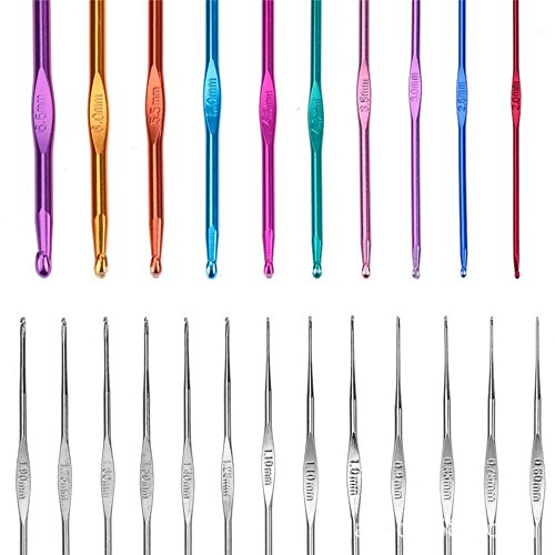 - The 22pcs different sizes metal crochet hooks cover 0.6mm-6.5mm which all are most popular size will make you to get variety of crochet projects. And with the smooth finish will not snag and tear your yarn while knitting.